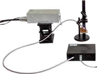 脈沖激光器、光纖光譜儀、聚焦透鏡、樣品、轉(zhuǎn)臺、耦合透鏡、光纖座、光纖。 |