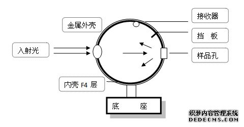 這是一種常用的積分球,用于測量各種樣品的反射率,透射率,在球體上前后兩半球相對位置上開有入光孔,樣品孔,在球體上適當位置裝有接收器,并在接收親器與樣品孔之間設(shè)以擋板,以防樣品的一次反射光進入接收器。這種球的尺寸為 φ30-2500mm ,一般配有支架和底座。內(nèi)表面噴涂優(yōu)質(zhì)的PTFE涂料,反射率高,壽命長,表面整體性好。PTFE涂料的光譜曲線見圖示。