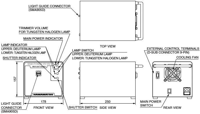 通過使用安裝在同一外殼內(nèi)的高亮度氘燈和鹵鎢燈,該光源能通過光波導(dǎo)(單賣)輸出200nm到1600nm的光。輸出的光強大約是現(xiàn)有型號的兩倍。緊湊的尺寸和較輕的重量使其易于攜帶。機械快門和外部控制等實用的功能使其易于使用。這種新型光源同時適用于多種型號的便攜式設(shè)備。